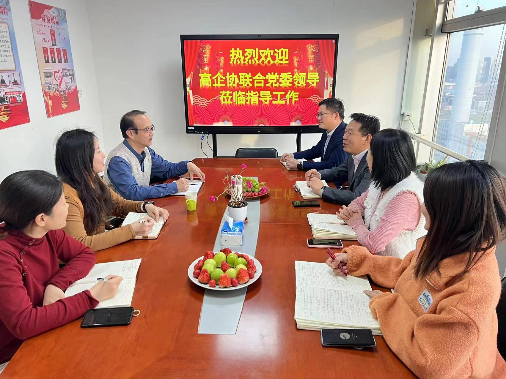 配圖:高企協(xié)聯(lián)合黨委領導臨派特生物,雙方進行座談交流